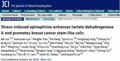 近日,由大连医科大学肿瘤中心首席研究员刘强教授领导的一项研究,聚焦社会心理压力影响肿瘤等重大疾病的热点问题,首次阐明了慢性压力诱导乳腺癌患者肾上腺素水平上调对肿瘤糖代谢通路进行重构,进而促进肿瘤干细胞特性的调控机制,并筛选出有效的治疗药物显著逆转慢性压力造成的肿瘤进展,为今后肿瘤患者的临床治疗提供了崭新的思路。该研究已发表在《The Journal of Clinical Investigation》上。