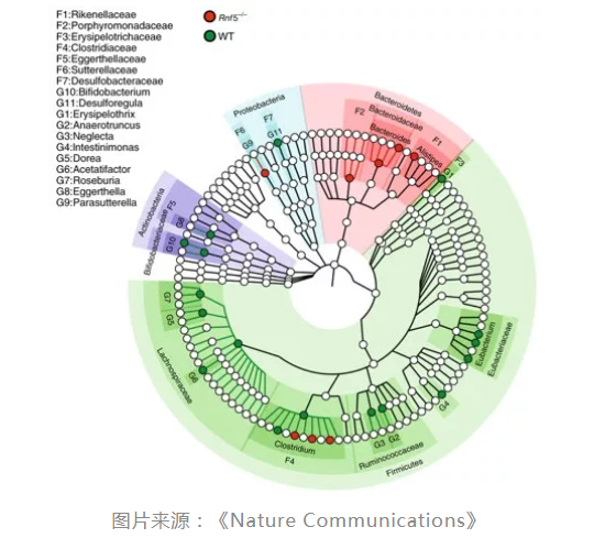科学家们利用先进的生物信息学技术识别出缺乏RNF5小鼠肠道中富含的11种菌株。将这11种菌株植入到肠道无菌的小鼠体内,可诱导抗肿瘤免疫反应,减缓肿瘤生长。