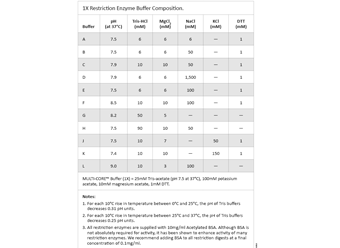 Table 1. 1X Restriction Enzyme Buffer Composition.