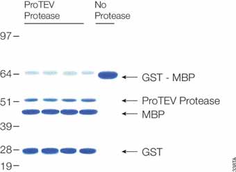 Figure 2. Cleavage of 20µg of GST-MBP fusion protein with ProTEV protease after 60 minutes at30°C.