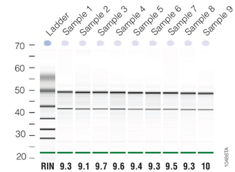 Figure 1. RNA purified from 1 × 105 HeLa cells isolated in parallel using the ReliaPrep™ RNA Cell Miniprep System.