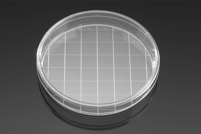 Falcon® 150mm细胞培养皿,带20mm模制网格,经TC处理聚苯乙烯,10/包,100/箱,无菌:实际尺寸——外径142.57mm x 24.77mm