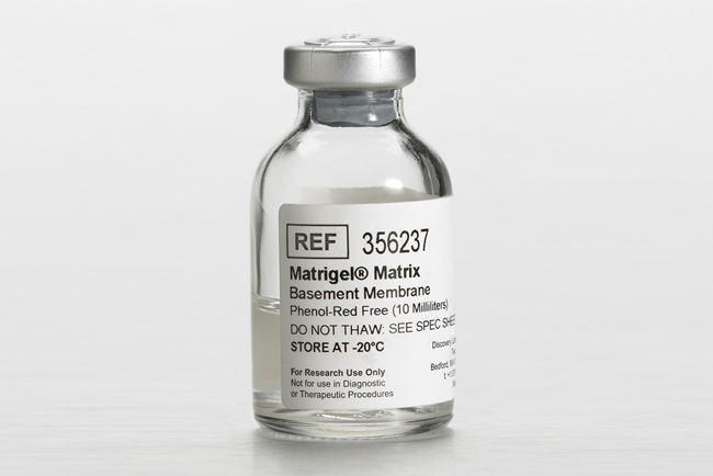 Corning® Matrigel® 10 mL不含酚红和*LDEV的基质推荐用于需要颜色检测 (如荧光法) 的试验。康宁Matrigel基质是分离自Engelbreth-Holm-Swarm (EHS) 小鼠肉瘤的可溶性基底膜提取物,该肿瘤富含细胞外基质蛋白,包括层粘连蛋白 (主要成分)、IV型胶原、硫酸乙酰肝素蛋白聚糖、巢蛋白和多种生长因子。