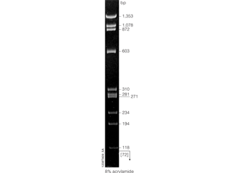 Conventional DNA Digest Markers(常规 DNA 消化 Marker)是通过使用一种或多种限制性内切酶消化 λDNA、ΦX174 复制型 DNA、或质粒等得到的。通过加热灭活酶,DNA 片段或者用酚抽提后用酒精沉淀,或者用酒精直接沉淀。沉淀的片段重悬于储存缓冲液。Marker 不作为定量分析使用。每个 Marker提供一管 6×蓝色/ 橙色上样染料。